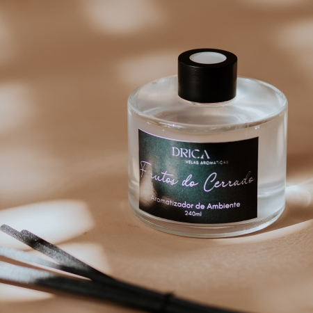 Acompanha 6 varetas pretas de algodão para melhor performance do Aromatizador de Ambiente Drica.